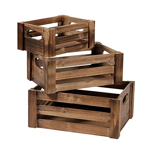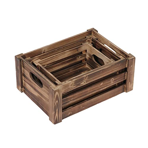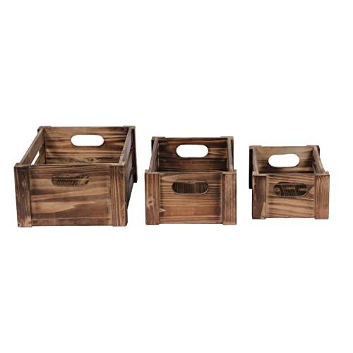 - [HANDMADE MULTI-FUNCTIONAL CONTAINERS] Made of sturdy wood. These nesting crates are stackable and nest into one another for easy storage. The cutout handles make them easy to carry around. Space saving design will help you create an extra space storage solution in your home. Each piece is unique and may have a small variation on the finishing.
