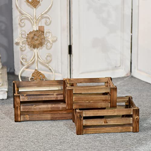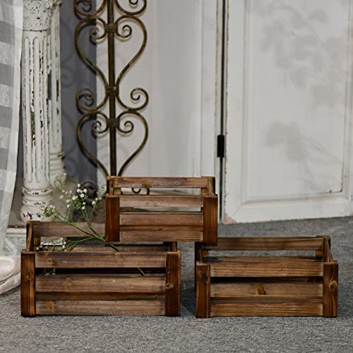 - [WORKS WELL IN ANYWHERE] Anywhere you want to add rustic home décor, these wood basket will complete the task successfully. Crates can be used to display potted plants, pottery, vintage books, wine, or other decorative items. Use these wooden crate box in your entryway, living room, kitchen, nursery room, bedroom, bathroom or home office.