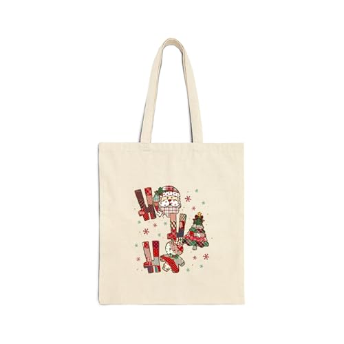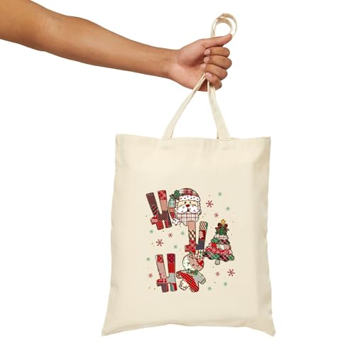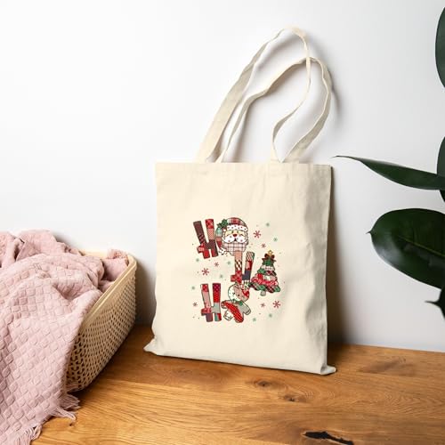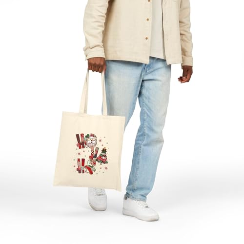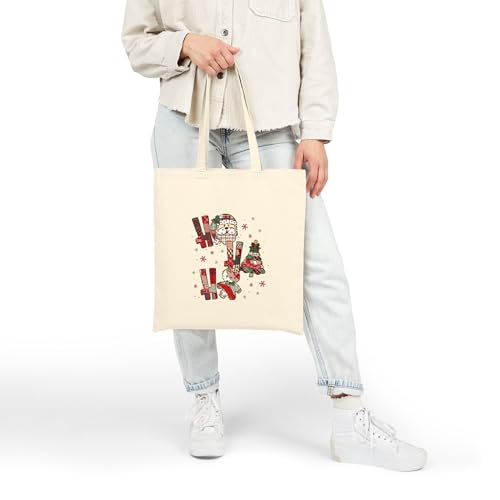 Generic - حقيبة قماش بسحاب بتصميم كريسماس "Ho Ho Ho" مع شجره الكريسماس وسانتا – Christmas "Ho Ho Ho" Canvas Tote Bag With Zipper-948