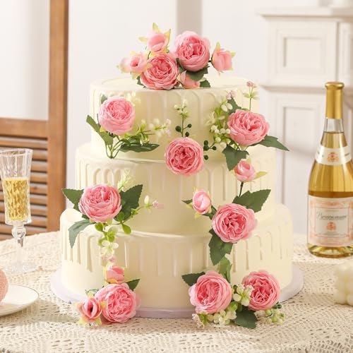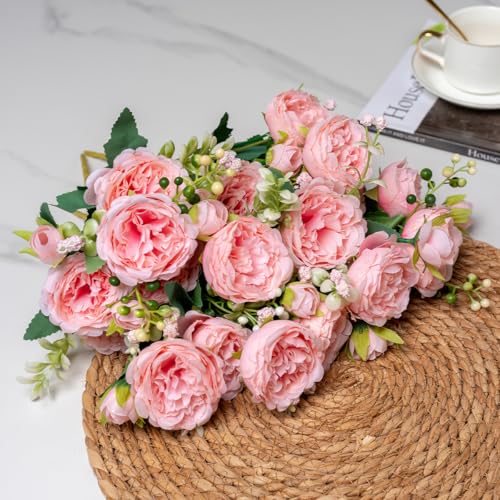 Hobyhoon - 4 Bunches Peony Artificial Flowers for Decoration Faux Roses Fake Bouquet Real Touch Silk Flores Artificiales for Vase Wedding Home Décor (Light Pink 8pcs)