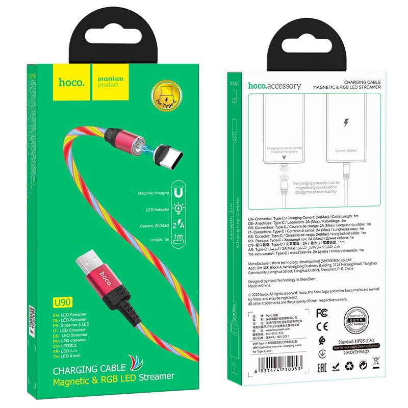 HOCO - Hoco U90 - Ingenious Magnetic & RGB LED Streamer Charging Cable (2A - 1M) - Micro-USB Plug For Samsung Huawei Xiaomi Oppo - Blue