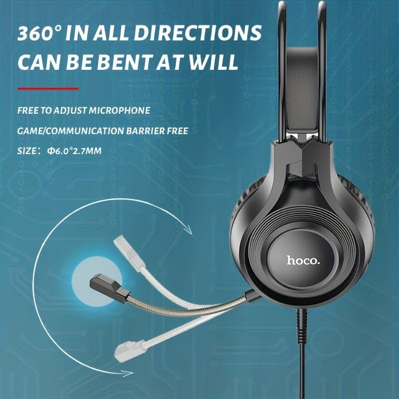 HOCO - Hoco W106 Tiger Gaming 3.5mm Jack Headphone with Microphone, 1.8 Meter Length, Black