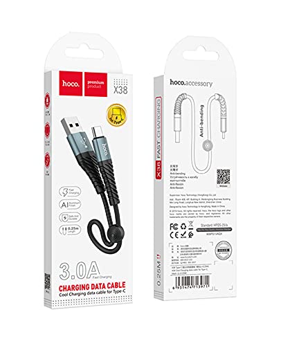 HOCO - Hoco X38 - Cool Charging And Data Transmittion Cable (3A - 0.25M), USB-A To USB-C Plug, Compatible With Samsung Huawei Xiaomi Oppo - Black