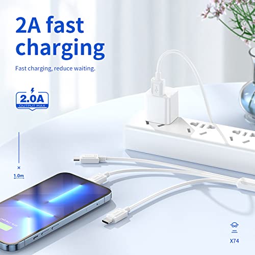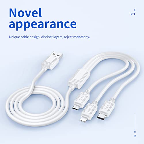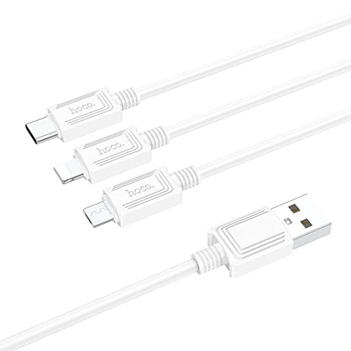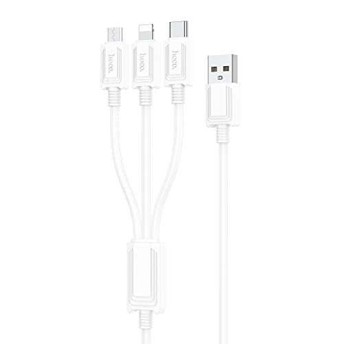 HOCO - Hoco X74-3-in-1 Charging Cable (2A - 1M), USB-A To Type-C/Micro-USB/Lightning, Compatbile With iPhone iPad Samsung Huawei Xiaomi Oppo - White