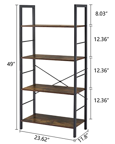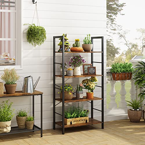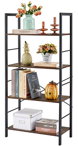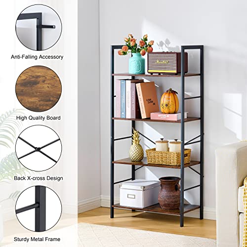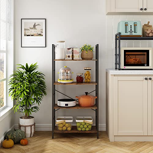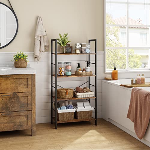 Hoctieon - Hoctieon 4 Tier Bookshelf, Tall Bookcase Shelf Storage Organizer, Vintage Wood Open Shelves, Utility Organizer Shelves for Home Office, Living Room, Bedroom, Kitchen, Bathroom, Rustic Brown