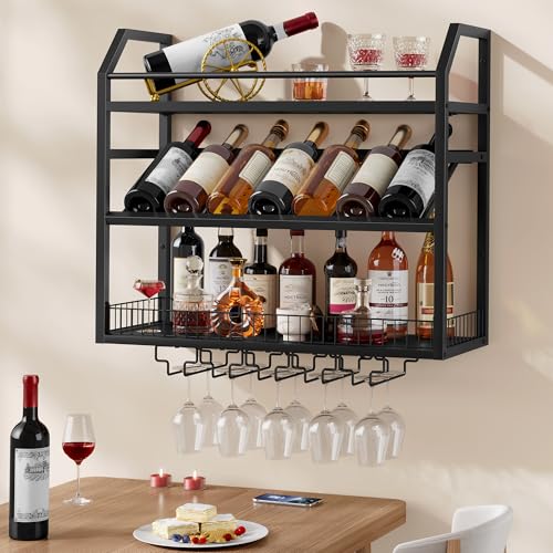 Hoctieon - Hoctieon Wall Mount Wine Rack, Wall Mounted Wine Bottle Rack for Display and Storage, Hanging Bottle Holder, for Living Room, Dining Room, Bar, Wine Cellar, Black