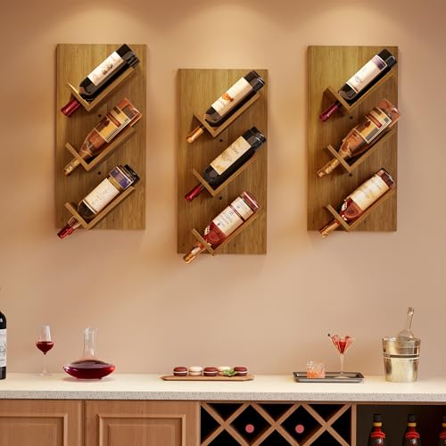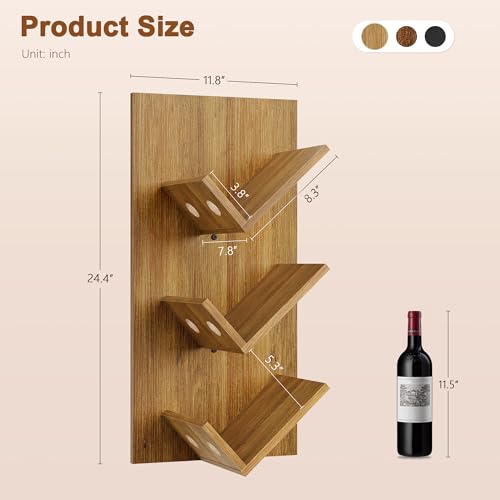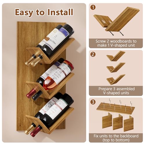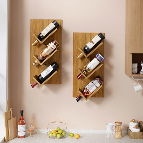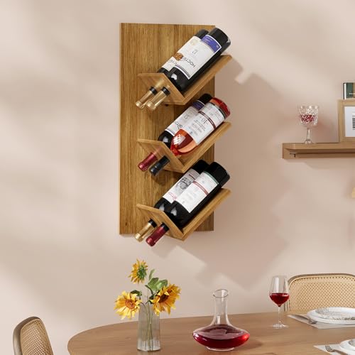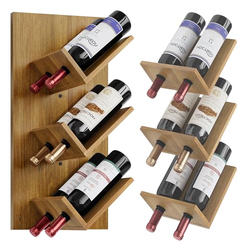 Hoctieon - رف مشروبات يثبت على الحائط من هوكتيون، 6 زجاجات، رفوف مشروبات معلقة للعرض والتخزين، حامل زجاجات نبيذ خشبي ريفي للبار المنزلي والمطبخ وغرفة الطعام، بني دافئ