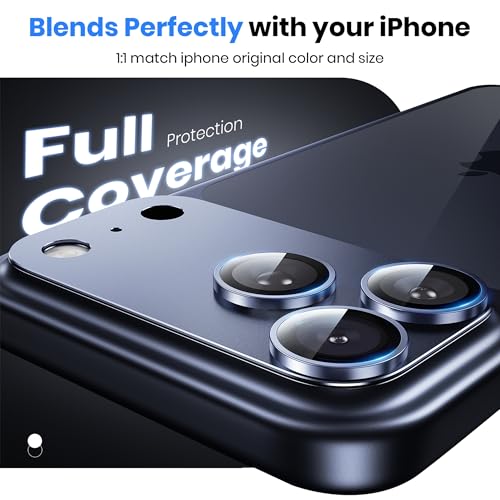 Hoerrye - واقي عدسة الكاميرا لموبايل آيفون 17 برو ماكس من هورراي، [مقاوم للكسر حتى 3.66 متر بدرجة عسكرية] [امتصاص قوي] واقي للكاميرا من الزجاج المقوى بدرجة صلابة 9H بلس، صديق للبيئة، لون أزرق غامق