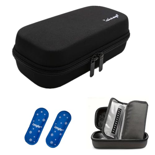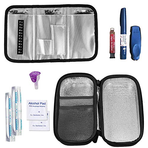- كل ذلك في حافظة - تحتوي حافظة التبريد الطبية على مكان لكل شيء، منظم متر وشرائط اختبار ومناديل كحولية وقلم أنسولين ومحاقن وإبر أقلام إضافية وعلامات جلوكوز - كل ذلك في حافظة مرضى السكري العملية هذه.