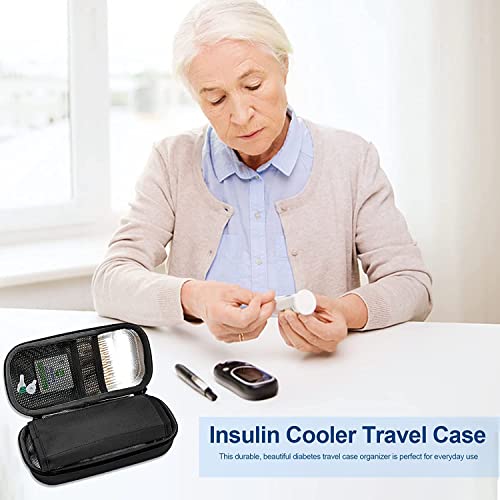 HOFEESEA - حافظة تبريد أنسولين للسفر مع عبوتي ثلج من هوفيسيا منظم معزول لأدوية مرضى السكري شنطة محمولة لقلم الأنسولين ومستلزمات أسود بولي فينيل كلوريد PVC
