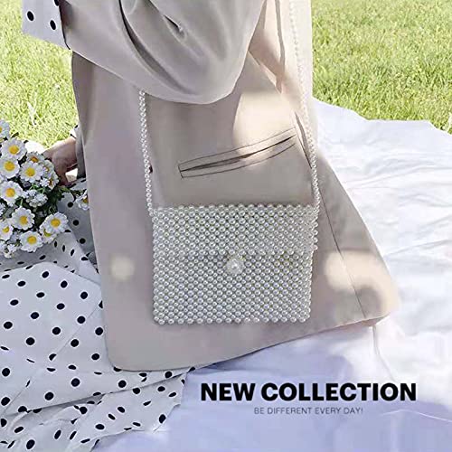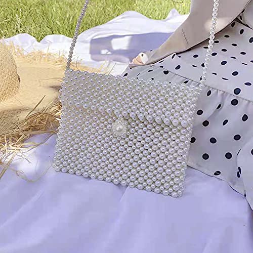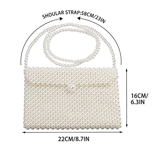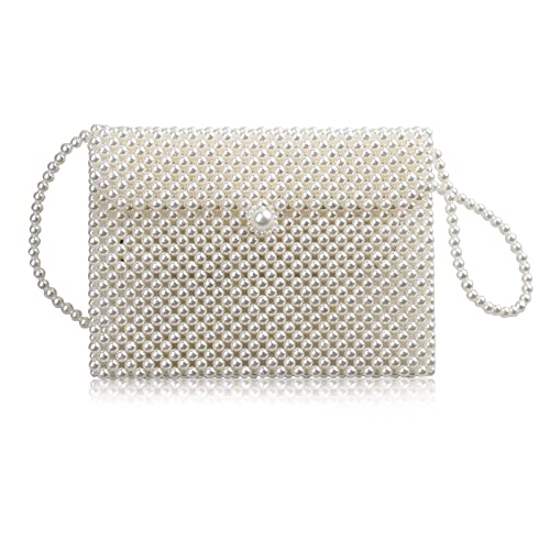 hogoo - محفظة كلاتش بيضاء فاخرة للنساء لؤلؤية حقيبة كتف مطرزة باللؤلؤ شنط كروس لحفلات الزفاف والسهرات