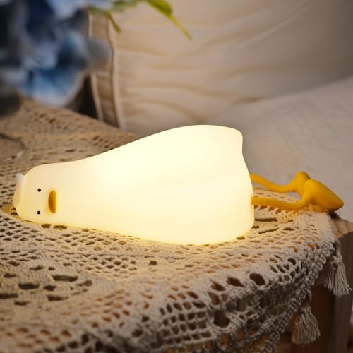 - 🦆【3 Brightness Levels Dimming Cute Lamp】🦆3000k selected warm and comfortable duck lamp, which can be activated by tapping it, perfect for night use. The soft warm light makes people feel comfortable and can easily induce drowsiness. Anti-blue light warm LED light won't flicker or hurt your eyes. This warm ducky lamp can be used as a desk lamp while working.