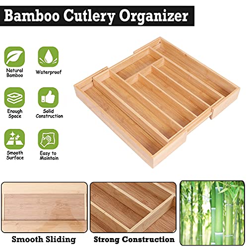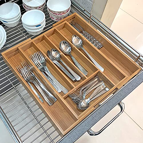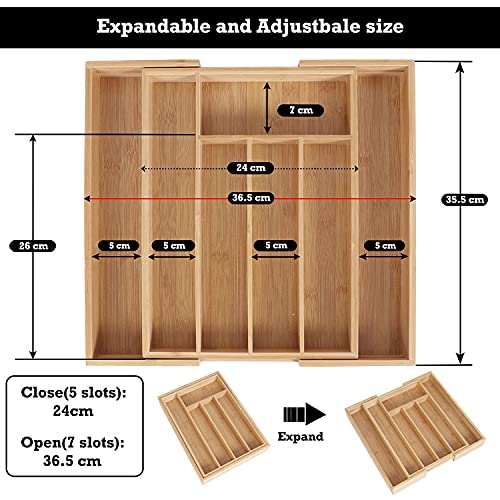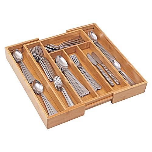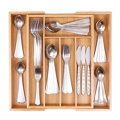 - منظم أدراج قابل للتوسيع - تتميز صينية أدوات المائدة الخاصة بنا لدرج المطبخ بتصميم قابل للتعديل من 5 إلى 7 مساحات تخزين. 7 أقسام - تحتوي صينية تنظيم أدوات المائدة المصنوعة من الخيزران هذه على 7 مساحات تخزين شبكية لشوك العشاء وملاعق العشاء والسكاكين والمقشرة وما إلى ذلك