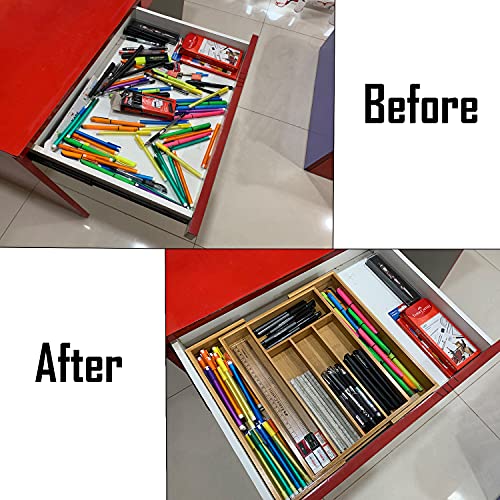 HOKIPO - هوكيبو صينية ادوات مائدة من الخيزران مكونة 7 اقسام لادراج المطبخ قابلة للتعديل | تخزين منظم وحامل تناول الطعام AR3672