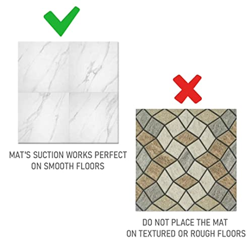 - CAUTION: Clean surface before using. Place Secure suction cups before each use. Bathroom mat will only attach to clean, smooth surface. Not for use on textured, tiled, or non-smooth surfaces. Do not use bath oils - may cause slipping.