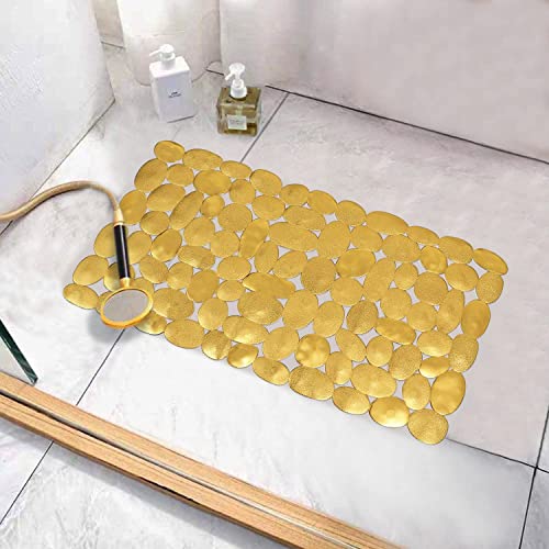 HOKIPO - HOKIPO Metallic Gold Bathroom Floor Mat Anti-Slip Shower Mat, (NEW-3881-GOLD)