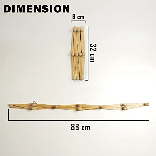 - CLEVER DESIGN - The wooden wall hanger arrives with you folded to a size of 32x9 cm . When opened it can expand to as far as 88 cm, but you can decide exactly how wide you would like it to be.