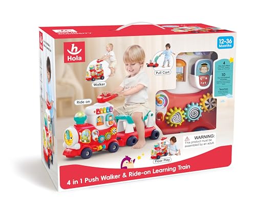 HOLA - Hola 4in1 Push Walker & Ride-on Learning Train, Interactive Toy w/Music, Lights & Sounds, Convertible, Pull-Along Wagon, Activity, Motor Skills & Imagination for Kids 12M+