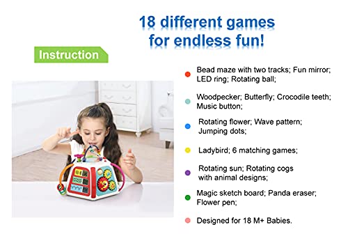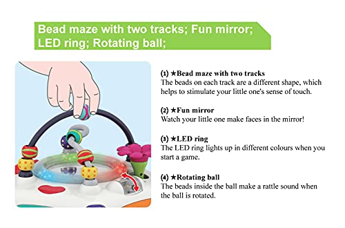 - Bead maze with two tracks; fun mirror; led ring; rotating ball.