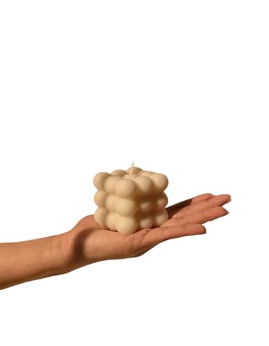 HOLA CANDLES - Bubble Cube Decorative Candle, White, Modern Design, Handmade (Milky Creamy)