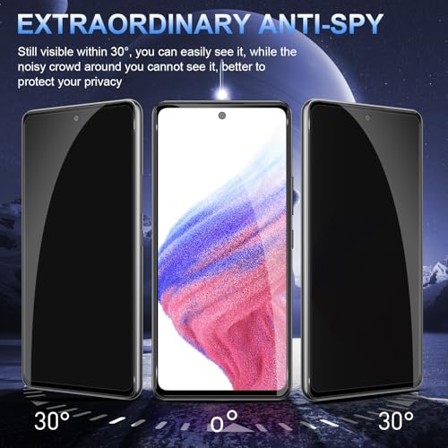 - 【Privacy Protection】Privacy screen protector for Samsung Galaxy A53 5G. Protect your personal and sensitive data from strangers. In public places, effectively block left and right vision so that others cannot see the contents of the phone and protect your privacy in public places.