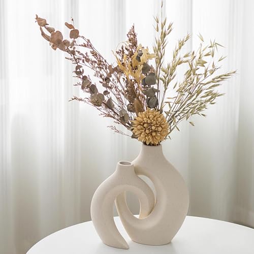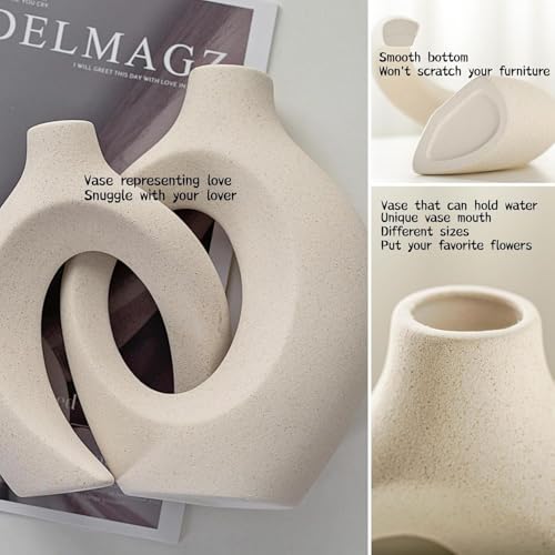 Generic - Hollow Ceramic Vase Set for Coffee Table Decor, Donut Decorative Vases for Boho Modern Table Decor, Home Decor Centerpiece for Living Room Entryway Table Shelf (Beige 6.3" W x H 6.3"