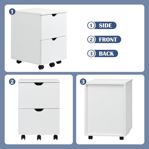 HollyHOME - HollyHOME 2 Drawer File Cabinet for Home Office, Wood Under Desk Filing Cabinet, Rolling Printer Stand with Wheels, White