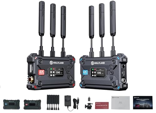 Hollyland - هوليلاند جهاز ارسال واستقبال فيديو لاسلكي 1300 قدم لوس المدى 50 مللي ثانية HDMI SDI 4K 30FPS / 1080p 60FPS حتى 4 مستقبلات، بث مباشر، مسح ذكي للقناة (1RX+1TX)