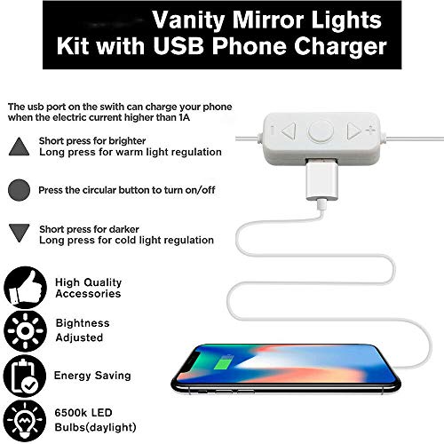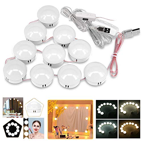 Generic - Hollywood Style 10 Pcs LED Bulb Vanity Makeup Mirror with Dimmable Light Bulbs,White