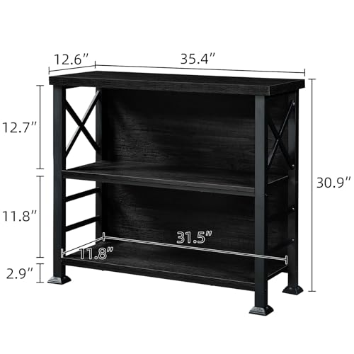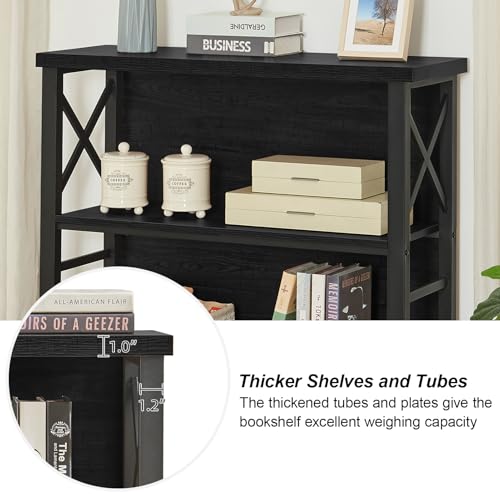 HOMBAZAAR - HOMBAZAAR Book Shelf, 3 Tier Short Bookshelf with Metal Frame and Backboard,Small Office Shelf Stand,Open Shelf Bookcase for Living Room, Bedroom and Kitchen, Black
