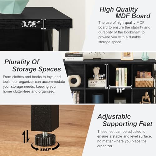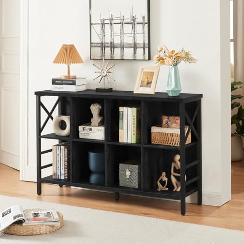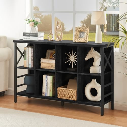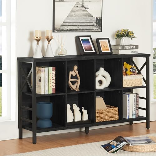 HOMBAZAAR - HOMBAZAAR Cube Storage Organizer Shelf,Industrial Horizontal Bookshelf with 8 Cube Storage,Long Cube Bookshelf for Office,Living Room,Apartment,Black