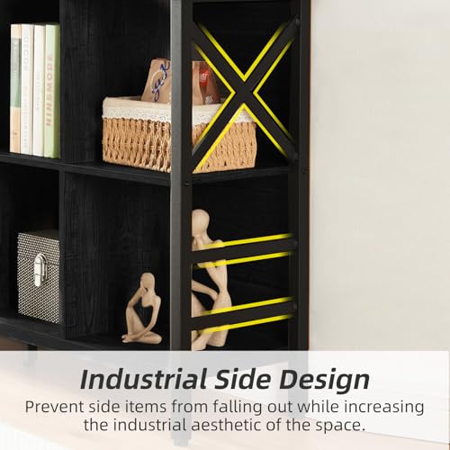 - 【Industrial Design Bookshelf】 This horizontal bookshelf overall design adopts industrial style design, it features side "X" and "=" box and back plate design, this design on the basis of maintaining the aesthetics of the product, prevent items from falling from the side or back, so that the industrial style of the product and practicality match