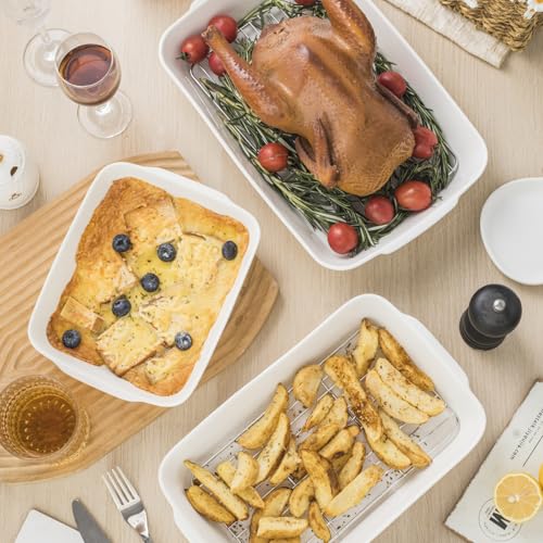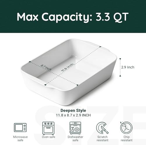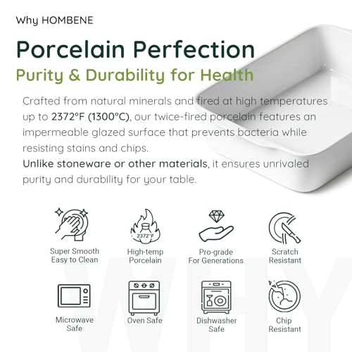 HOMBENE DINNERWARE NOT ONLY FOR DINNER - HOMBENE 3.3 QT Ceramic Baking Dish, White Casserole Dish,Lasagna Pan for Oven, Bakeware for Baking, Kitchen Decor, Microwave Oven Safe, Dinner Party(8.7" x 11.8")