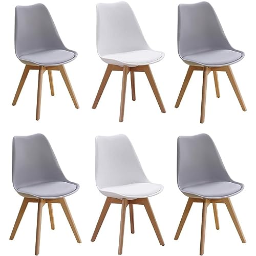 Homcasa - طقم كراسي طعام بتصميم عصري ومبطن بالبولي يوريثين وبأرجل خشبية صلبة ومناسب كرسي مقعد استرخاء بنمط لورينزو كلاسيكي ومكون من 6 قطع (4 رمادي + 2 أبيض)