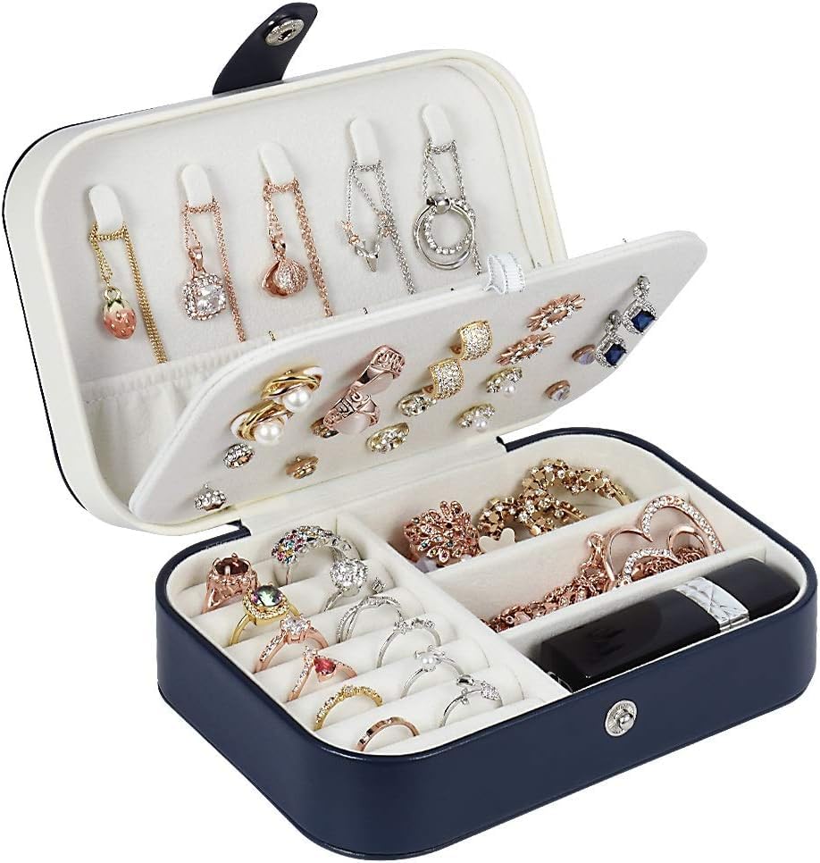 homchen - Travel Jewellery Organiser Bag, Jewelry Storage Box Case for Bracelet, Earrings, Rings, Necklace (Dark Blue)