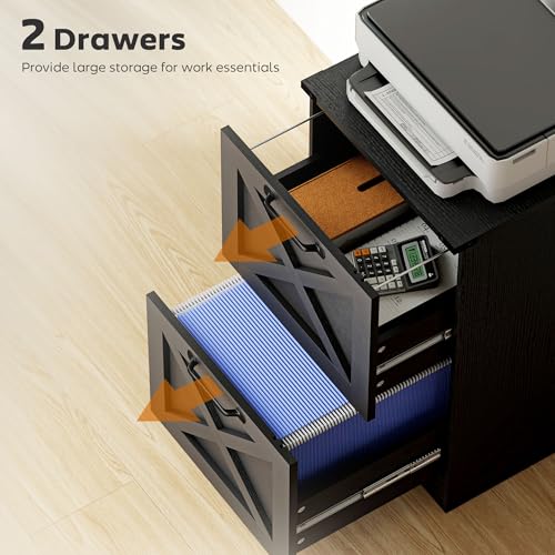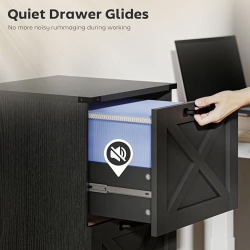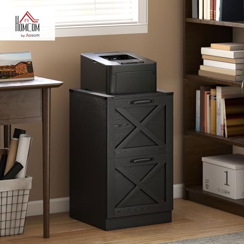 HOMCOM - HOMCOM 2 Drawer File Cabinet with Silent Slides, Vertical Farmhouse Filing Cabinet with Adjustable Hanging Rails, Fits Letter/A4 Size, Printer Stand for Home Office, Black