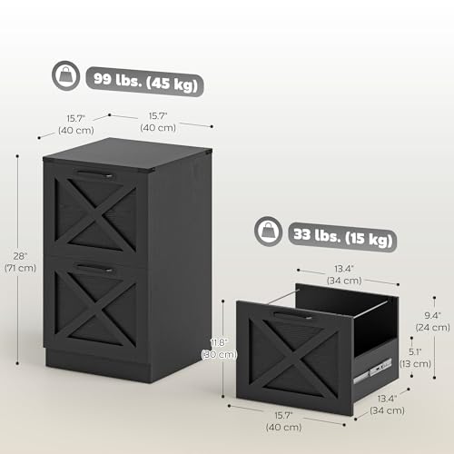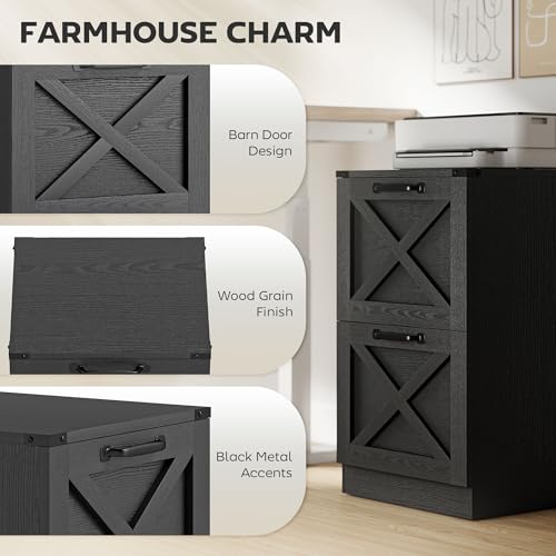- Farmhouse Charm Redefined: X-pattern drawer fronts with decorative metal accents and a wood-grain top give this filing cabinet a farmhouse charm that feels warm and welcoming, keeping your office or living area organised while adding character