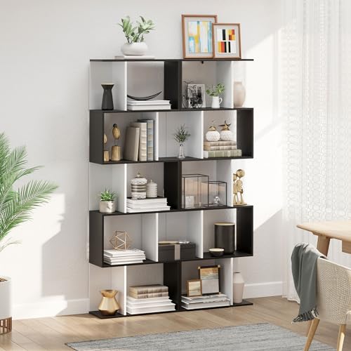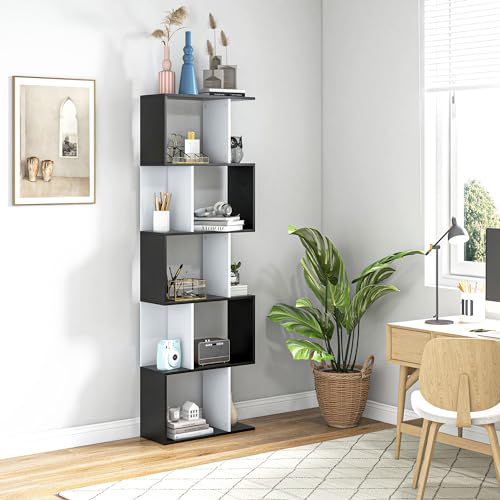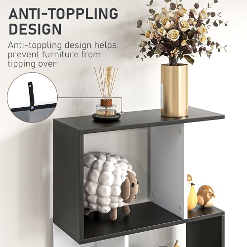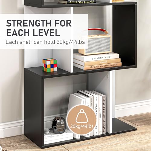 HOMCOM - خزانة كتب من 5 طبقات من هومكوم، أرفف عرض على شكل حرف S، مقسم وحدة بلون أسود