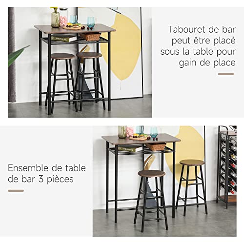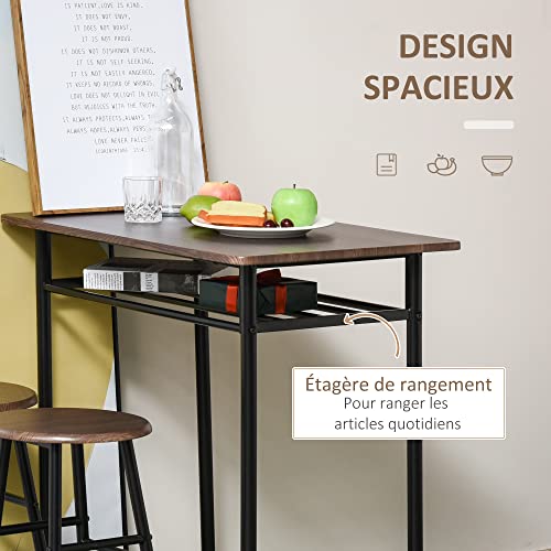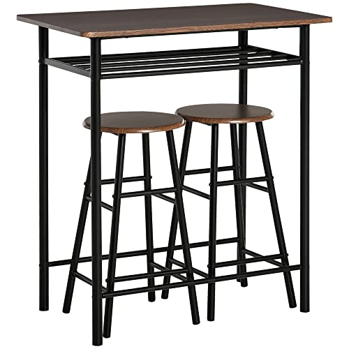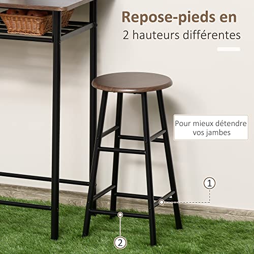 HOMCOM - طقم طاولة بار بتصميم صناعي من هومكوم + مقعدين خشب ام دي اف مصنوع الجوز المقلد والمعدن بلون أسود