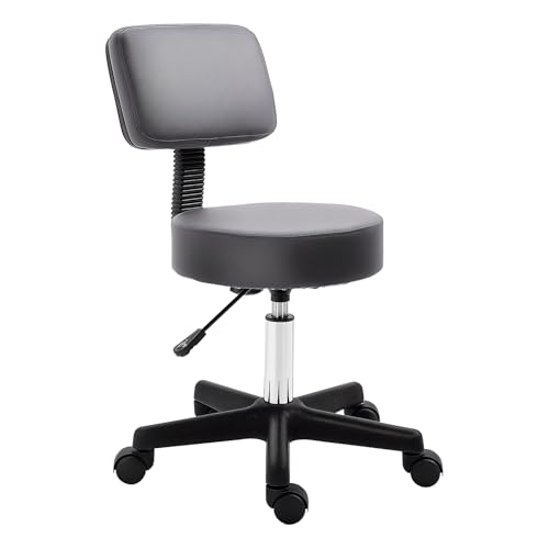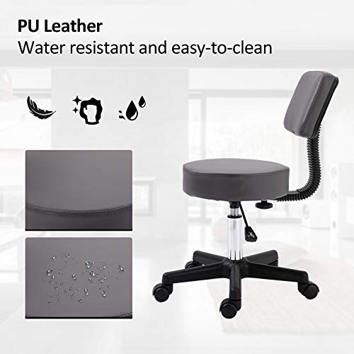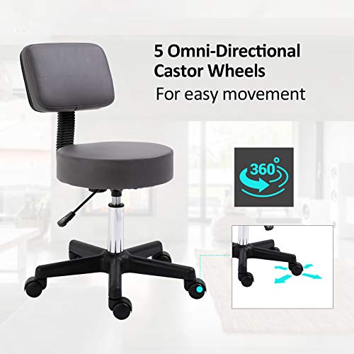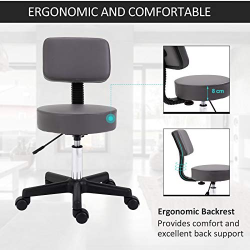 HOMCOM - HOMCOM Beautician's Swivel Salon Chair w/Padded Seat Back 5 Wheels Adjustable Height Salon Hairdressers Tattoo Spa Rolling Cushion Professional 35cm Grey