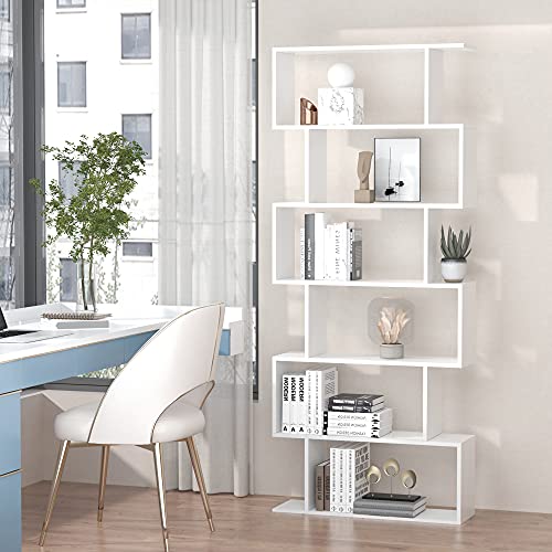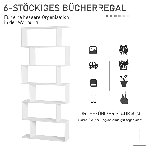HOMCOM - خزانة كتب، رف حائط، مقسم للغرفة مع 6 أقسام، رف قائم، رف ملفات، طول 80 سم × عرض 23 سم× ارتفاع 1.92 متر، أبيض من هومكوم