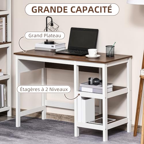 HOMCOM - HOMCOM Computer Desk Multimedia Dim. 110L x 48W x 76H cm 2 Side Shelves MDF E1 Oak White