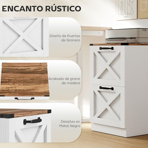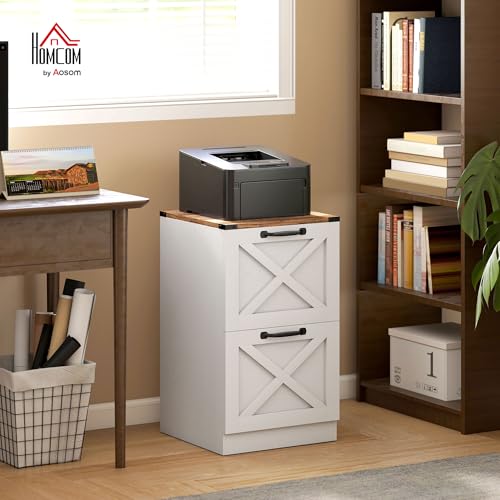 HOMCOM - هومكوم درج مكتب بدرجين، درج مكتب، خزانة ملفات، حامل طابعة، مع قضيب تعليق لـ A4 والرسائل، 40 × 40 × 71 سم، ابيض