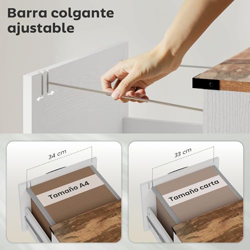 - تخزين مرن: تحتوي خزانة الملفات على درجين واسعين وقضبان معدنية قابلة للتعديل لمجلدات الحروف مقاس ايه 4. يعمل الجزء العلوي على وضع الطابعات أو الديكور، والجمع بين العملية والأناقة في قطعة واحدة من الأثاث