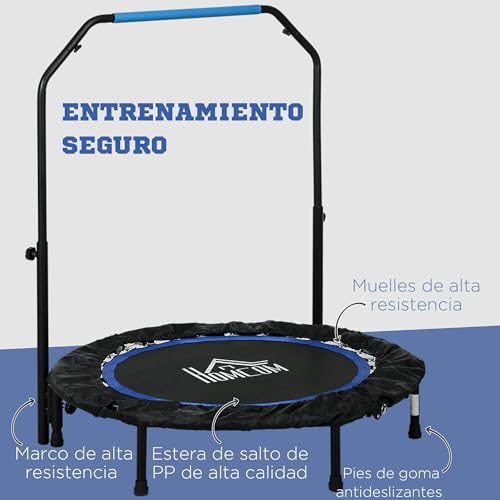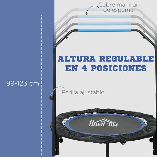 - FITNESS TRAMPOLINE WITH ADJUSTABLE HANDLE: This fitness trampoline for adults features a four-level adjustable handle, from 99 to 123 cm, perfectly adapting to your usage habits. It's like it's tailor-made for you