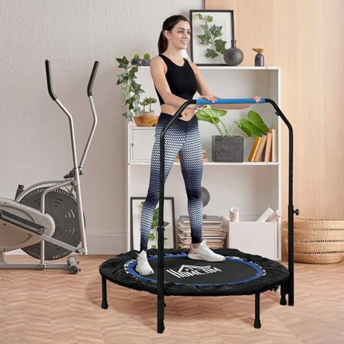 HOMCOM - HOMCOM Fitness Trampoline Ø102 cm Folding Trampoline with 4 Levels Adjustable Handle Steel Frame for Training Legs Body in Home Office Gym Blue