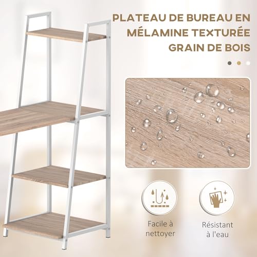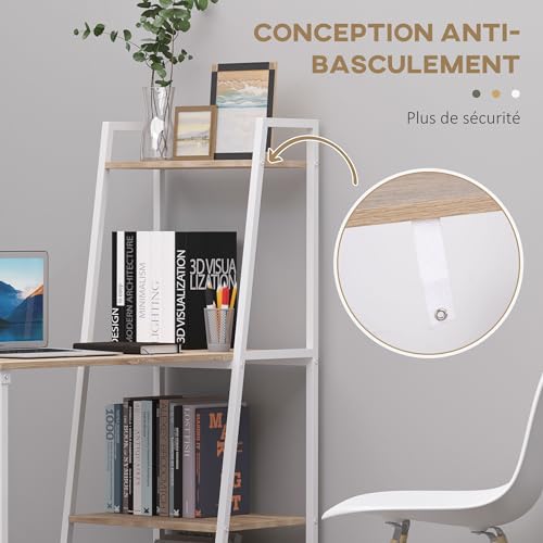 HOMCOM - مكتبة مكتب قابلة للطي 2 في 1 بتصميم 4 رفرف من هومكوم، خشب بلو فاتح مقلد ومعدن، أبيض