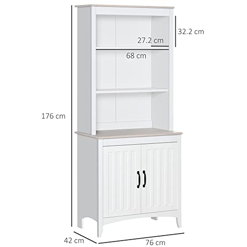 HOMCOM - HOMCOM Kitchen Cupboard with 3-Tier Shelving Double-Door Storage Cabinet, Sideboard with Adjustable Shelves Microwave Oven Counter Top, White
