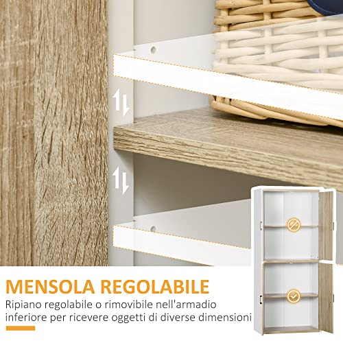 HOMCOM - HOMCOM Kitchen Pantry in MDF Wood with 4 Adjustable Shelves, 4 Doors and Anti-Tilting Device, 80 x 40 x 182 cm, Wood and White