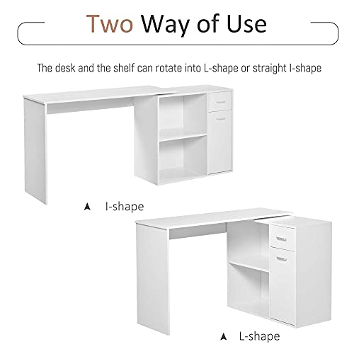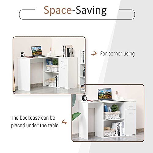 HOMCOM - HOMCOM L-Shaped corner computer desk Table Study Table PC Workstation with Storage Shelf Drawer Home Office white